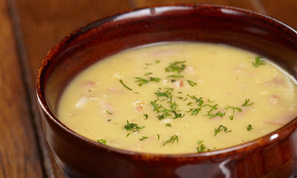 - Ετοιμάζετε ένα πιάτο με ζωμό, λαχανικά και ψιλοκομμένο κοτόπουλο.